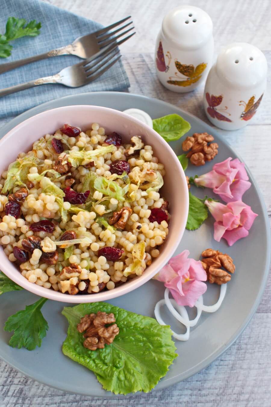 This recipe courtesy of john carroll for the california walnut board. Cherry, couscous, arugula and pistachio salad in balsamic vinaigrette (recipe) 58 · 25 minutes · a delightful summer salad featuring fresh cherries, arugula, pistachios and goat cheese (optional). This is also delicious with other dried fruit such as cranberries. Stir in the steeped cherries, minced celery, arugula, toasted walnuts, and sliced shallots. 1 tsp cumin seeds once the couscous has cooled slightly transfer it into a large bowl.